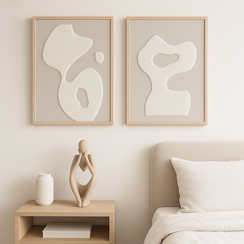 Cuadros arte abstracto colores claros con marco de madera de 40x50cm.
