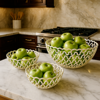 Set de 3 canastas de metal calado.